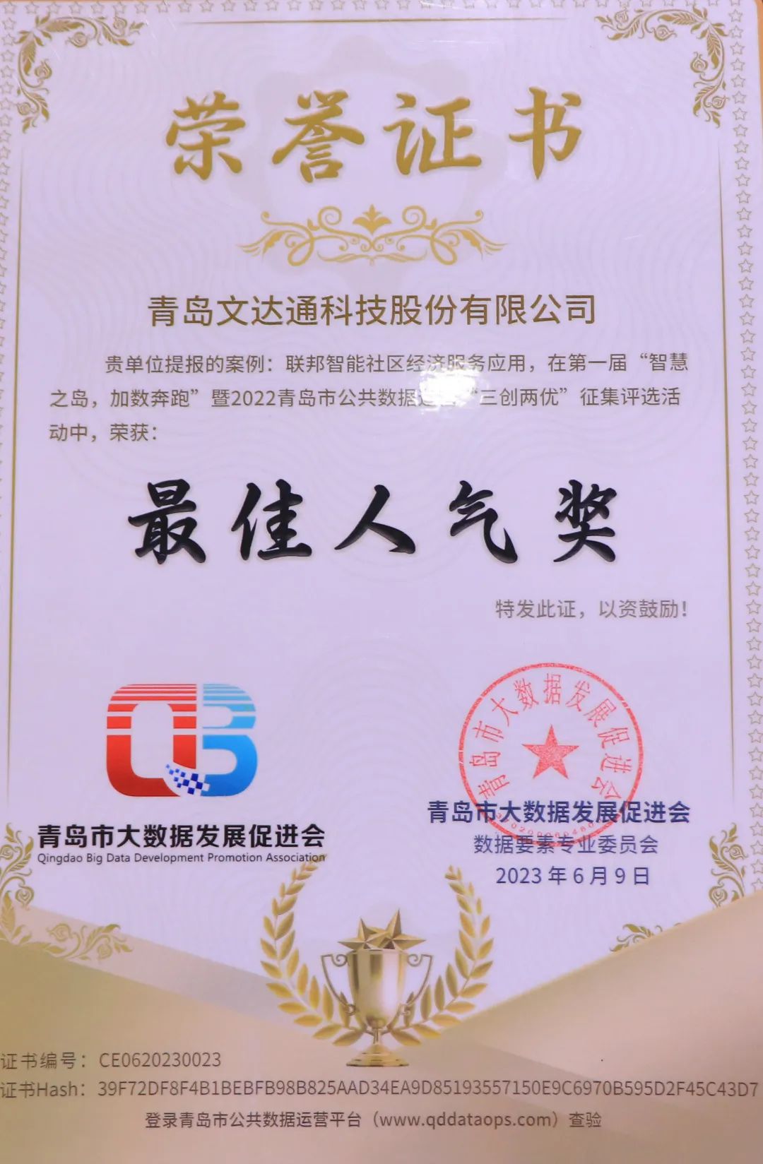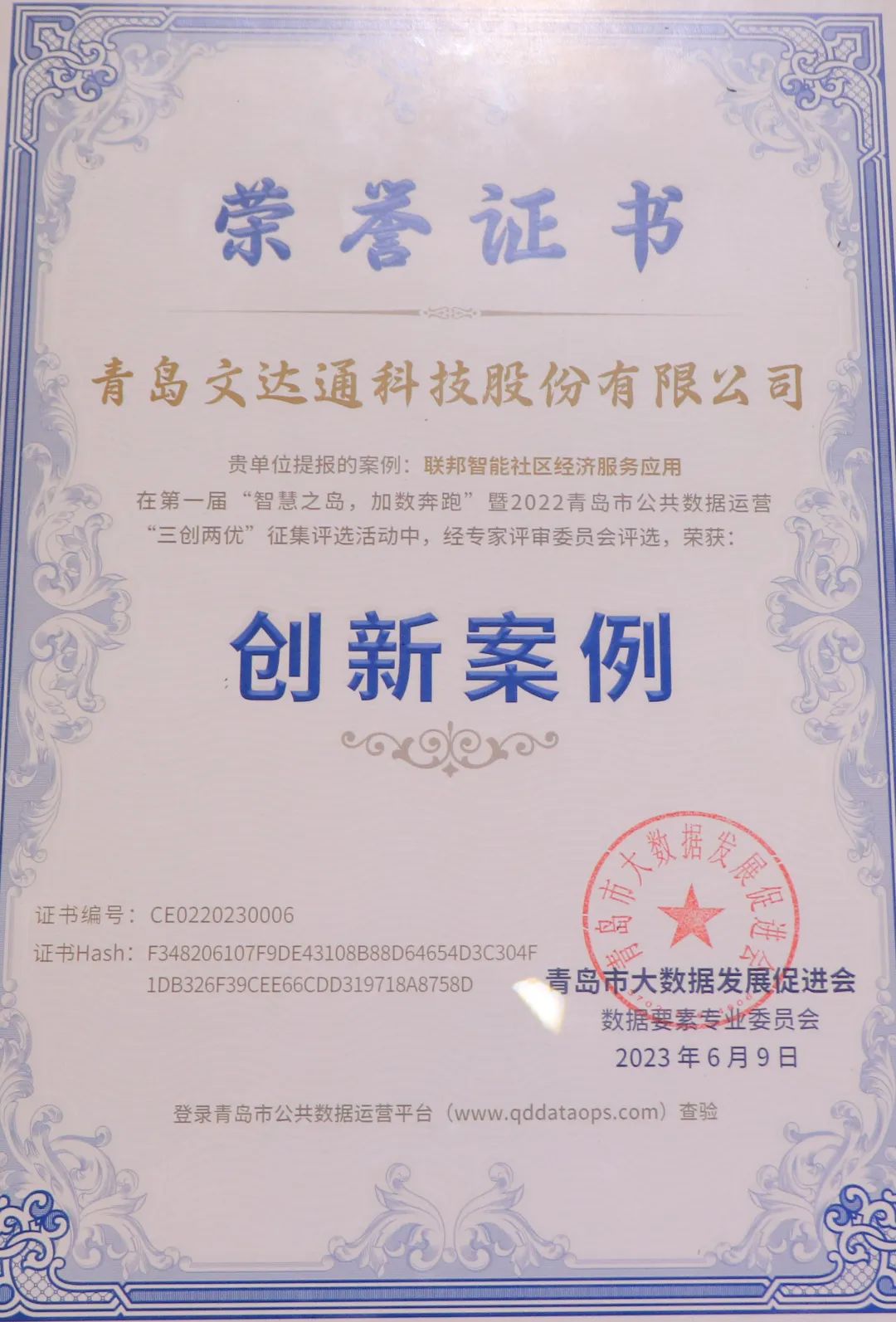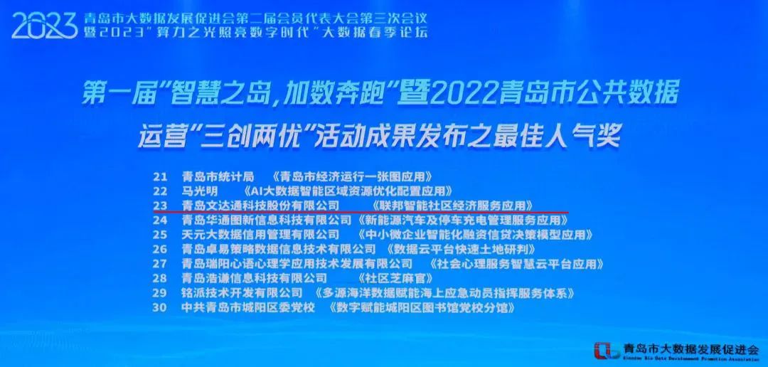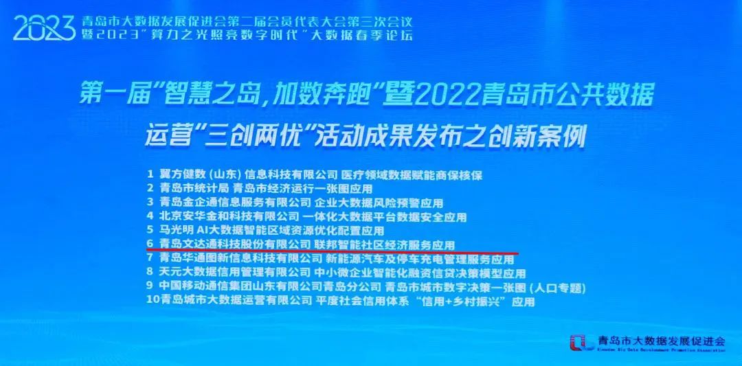 6月9日下午,青島市大數(shù)據(jù)發(fā)展促進會第二屆會員代表大會第三次會議暨“算力之光 照亮數(shù)字時代”大數(shù)據(jù)春季論壇在青島市市級機關(guān)會議中心隆重召開。會議由青島市大數(shù)據(jù)發(fā)展管理局指導(dǎo),青島市大數(shù)據(jù)發(fā)展促進會主辦,以“算力之光 照亮數(shù)字時代”為主題,交流行業(yè)發(fā)展趨勢,解讀政策規(guī)劃,展示年度大數(shù)據(jù)成果。同時,本次大會也對獲獎企業(yè)進行了表彰授獎。其中,文達通股份提出的“1+1+3+N”智慧社區(qū)運營創(chuàng)新模式榮獲2022年新型智慧城市優(yōu)秀案例擴面打榜一等獎;提出的聯(lián)邦智能社區(qū)經(jīng)濟服務(wù)應(yīng)用榮獲“優(yōu)秀創(chuàng)新案例”以及“最佳人氣獎”;文達通股份榮獲青島市大數(shù)據(jù)發(fā)展促進會2022-2023年“優(yōu)秀會員單位”稱號。